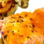Salmão grelhado ao molho de mel, gengibre e laranja